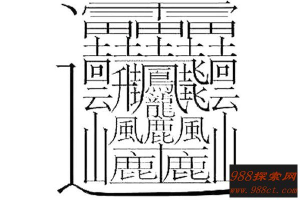 网上流传的小学生写出172画的汉字,从侧面也反映了很多的事情,类似于笔画这么多的汉字,全世界也独一份,但是像这种笔画非常多的汉字,其实还有不少,比如有一个笔画160的汉字,读作lai第四声,在古书集韵之中有过解释,是雷的意思,它也是由四个形状奇特的雷字所组成。