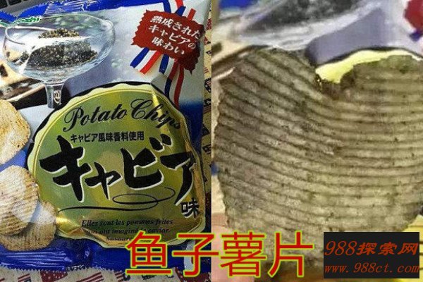 鱼子薯片来自于日本地区,它将两种最好吃的食物混合在一起,形成了最奇葩的零食,外表就像是发霉的薯片一样,让人难以下口,而且还有一股难闻的腥味,令人敬而远之。