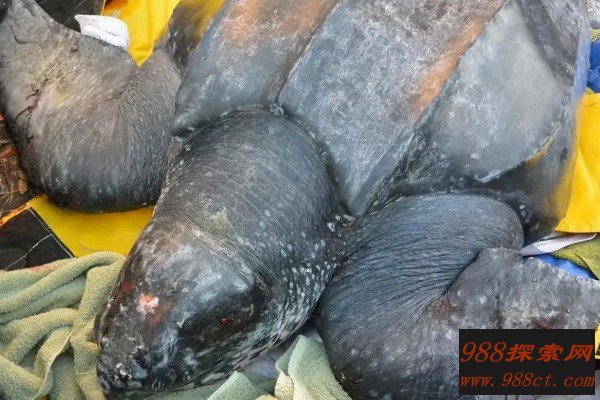 世界上最大的海龟就是棱皮龟,它们的体长能够达到3米,体重更是有一吨,头部硕大,脖颈比较短,上颚前端的为位置,有两个大三角形状的齿突,其间有一个凹陷口来承受下颚强大的喙,身体覆盖有革质皮肤,四肢呈浆状,没有爪子,前肢非常的发达,大约是后肢的两倍长。