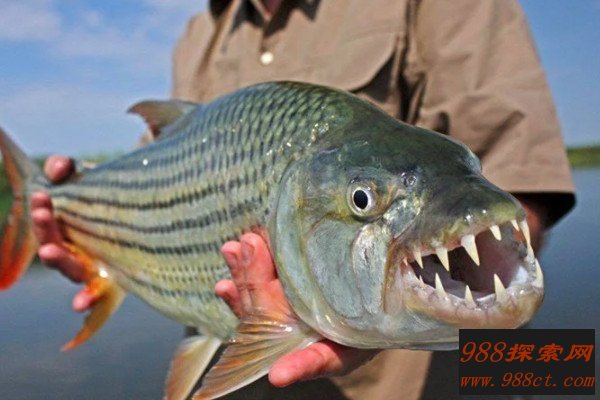 非洲虎鱼是一种贪吃的肉食性鱼类,它们因为具有巨大且锋利的牙齿而被人们熟知且畏惧,其牙齿犹如剃刀,饥饿的时候会袭击靠近自己的大型动物,还会供给人类,甚至对鳄鱼发起主动攻击,杀伤力和攻击速度惊人。