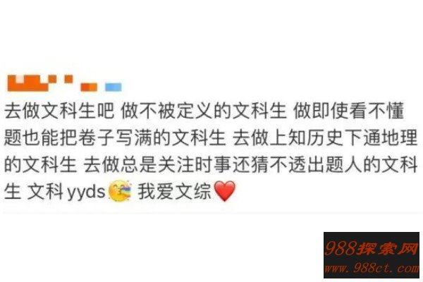 这个梗的意思是文科生在考试的时候,即便不知道题目怎么做也要把试卷写的很满,但理科生不会写的题目就只能空着,文科生不管写了什么,总是可以扯上一点关系的,这或者就是尊严的象征。