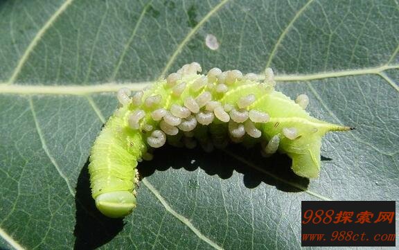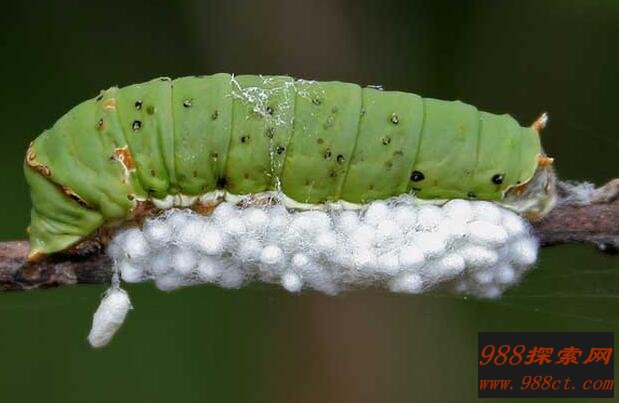 这种幼虫在成长发育过程中经历的每一阶段都需要蜕皮,当它们准备钻出寄主身体时,会将自己最后一次蜕皮的时间与之相吻合。这样当它们钻出寄主身体的同时,褪下的皮会将毛虫身体的伤口堵塞。这样便完成了对这条伤横累累的毛虫的身体修补手术。也就能够保证这条可怜的毛虫不会立马死去,还能够为它们保驾护航一会儿。