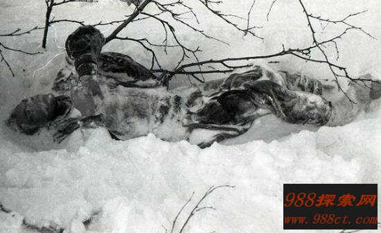 当搜寻队来到乌拉尔山搜寻这九名学生的时候,却发现他们都死了,帐篷附近有5个人冻死,稍远处另外4人个死后被雪埋着,其中一人头部被击伤,另一个舌头被割。于是这条消息传出去之后震惊了不少的人,怀疑这些学生都是被不明物体给攻击才导致死亡了。