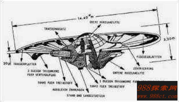 同时它还可以悬停在空中。无需转弯就可以任意向前或向后飞行。可是伴随着第三帝国灭亡的丧钟,这架当时世界上最先进的飞行器在战争即将结束时,德军有关部门也把别隆采圆盘炸毁了。尽管苏联红军在攻克柏林后很快控制了位于布雷斯劳市的制造“别隆采圆盘”的工厂,但等红军赶到那里时却什么也没有得到。