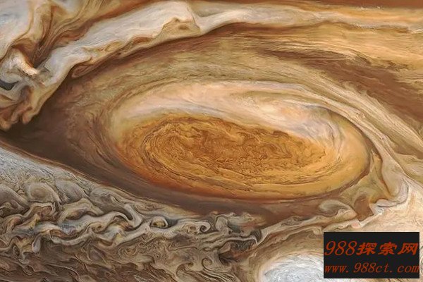 这个外形像眼睛一样的大红斑气旋长度约为25000千米,天文学家观测到,此大红斑至少已经存在200-350年左右,这么多年过去了,其颜色和形状都有了变化,但从来没有消失过。大红斑颜色有时候很淡,有时候又很深,甚至还可以进行飘移运动,十分神奇。
